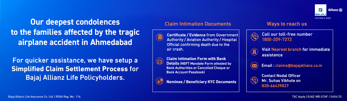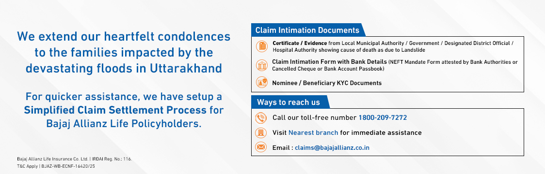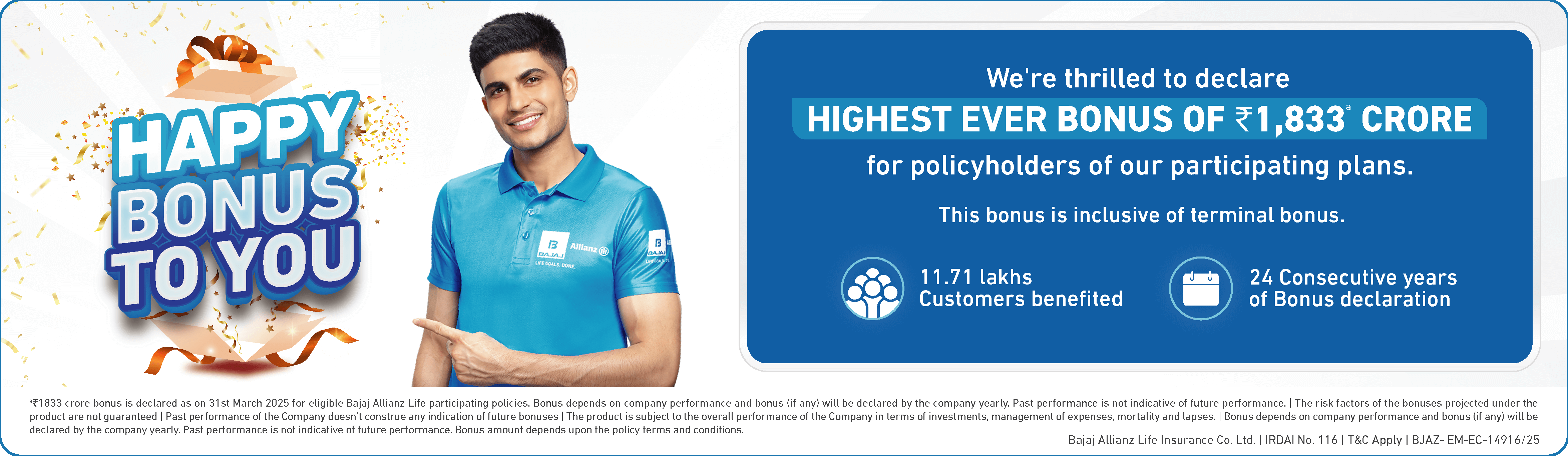 15Please refer to Bajaj Allianz Life Linked Accident Protection Rider (UIN: 116A055V02) sales literature or visit the insurance company’s website or consult your insurance consultant for more details and eligibility condition.