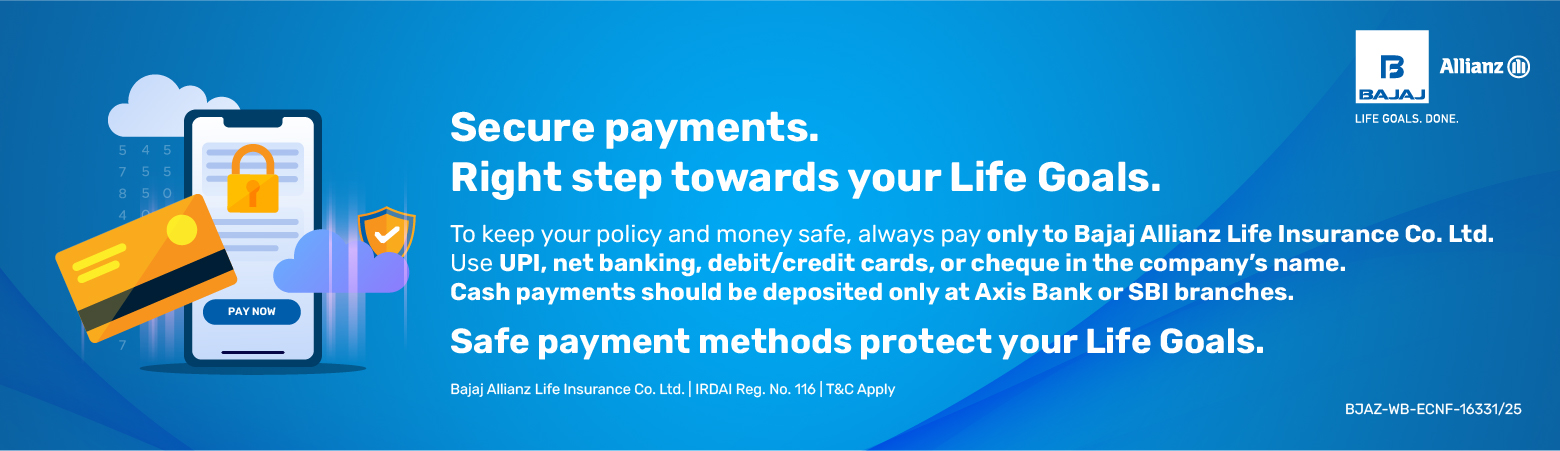 This advertisement is designed for combination of Benefits of two individual products named (1) Bajaj Allianz Life Goal Assure IV - A Unit- Linked NonParticipating Individual Life Savings Insurance Plan (UIN: 116L204V01). (2) Bajaj Allianz Life POS Goal Suraksha - A Non Linked, Non Participating, Individual, Life Insurance Savings Plan (UIN: 116N155V13).These products are also available for sale individually without the combination offered/ suggested. The customer is advised to refer to the detailed sales brochure of respective individual products mentioned herein before concluding the sale