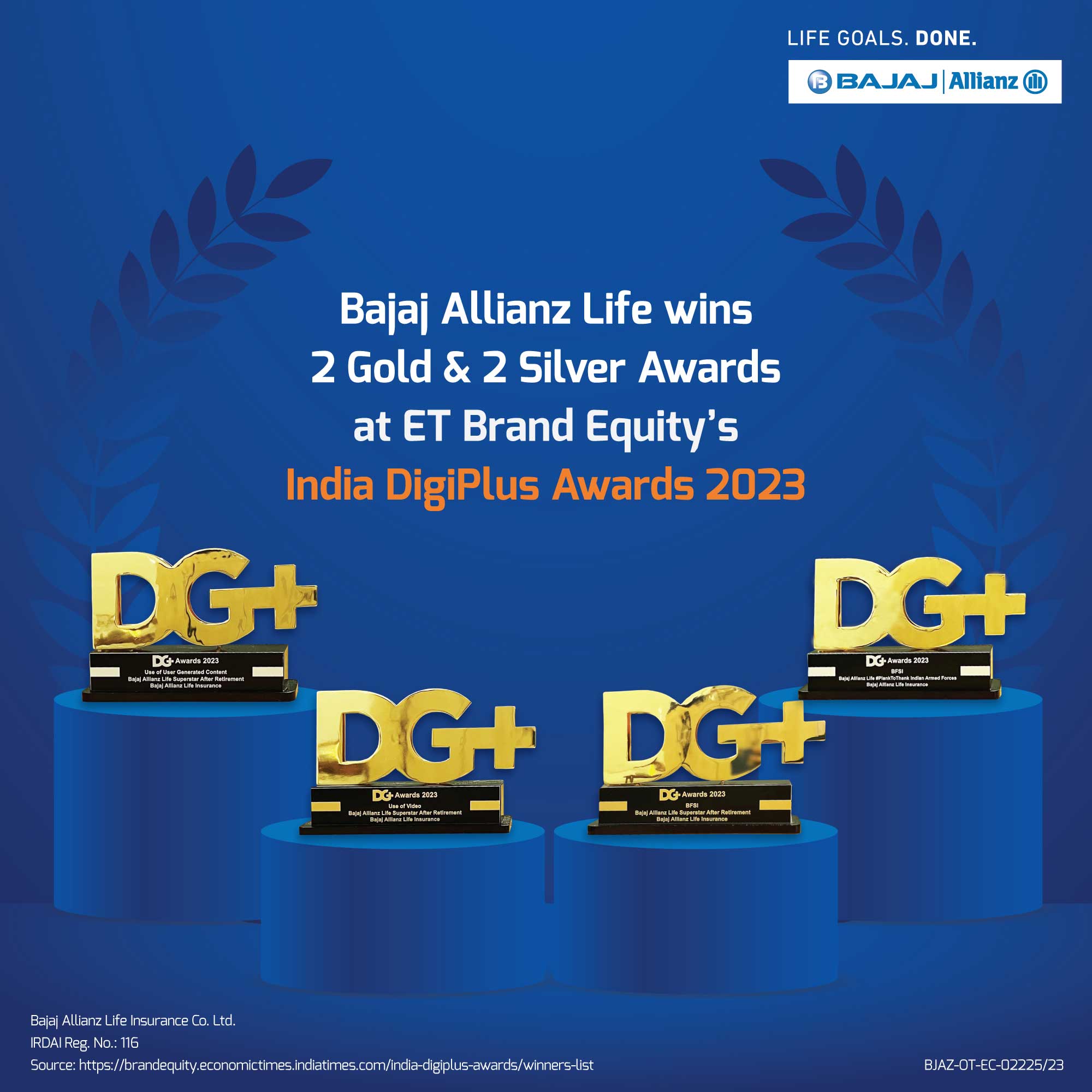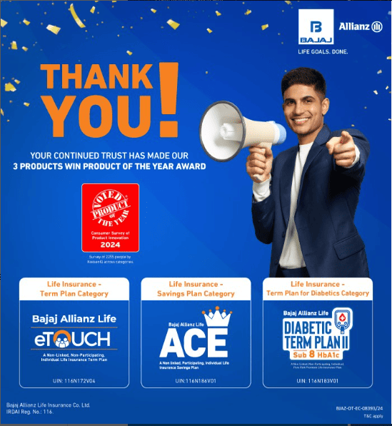 Driven by competitive pricing, product innovation, and customer-first thinking, Bajaj Life has earned the trust of millions and cemented its place as a preferred Life Goals enabler. Bajaj General Insurance offers a wide range of general insurance solutions, including health, motor, home, travel, and more, with a focus on simplicity, speed, and service excellence — ensuring peace of mind for customers at every step.