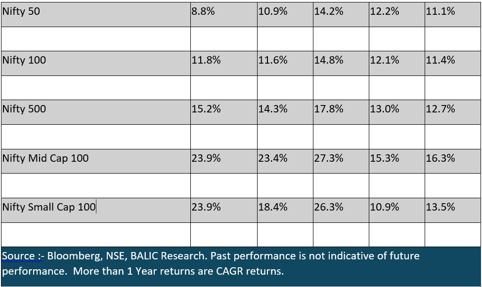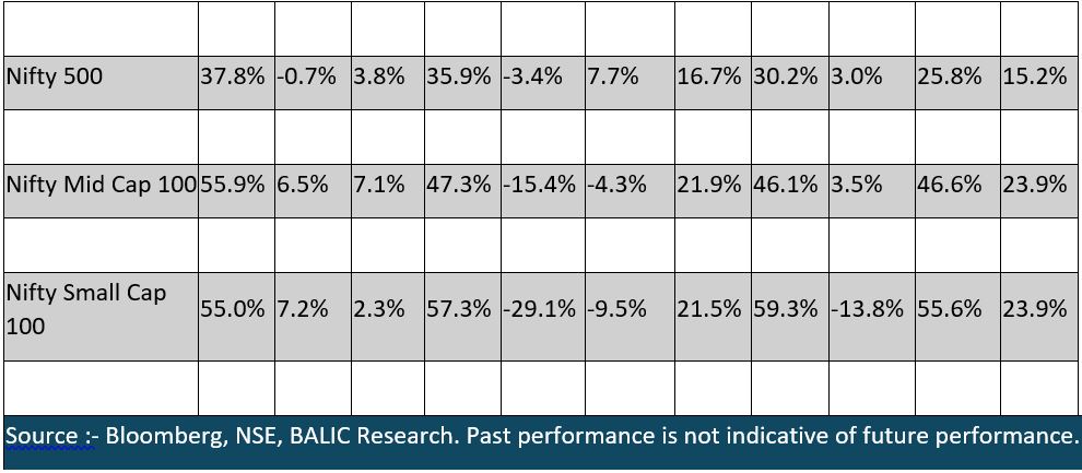 • The historical index allocation among Large Cap, Mid Cap & Small Cap suggests that it keeps on changing based on market dynamics.