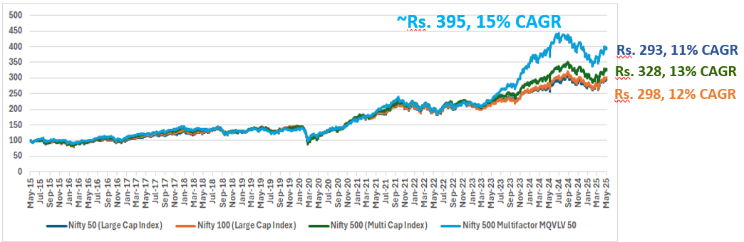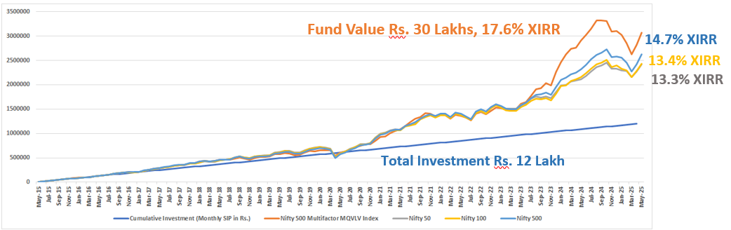 Nifty 500 Multifactor 50 Index Fund is available Bajaj Life Future Wealth Gain IV - A Unit- linked Non- Participating Individual Life Savings Insurance Plan (UIN:116L202V01), Bajaj Life Goal Assure IV - A Unit-linked Non-Participating Individual Life Savings Insurance Plan (UIN: 116L204V01), Bajaj Life LongLife Goal III is A Unit-linked Non-Participating Whole Life Insurance Plan (UIN:116L203V01), Bajaj Life Invest Protect Goal III - A Unit-linked Non-Participating Individual Life Savings Insurance Plan (UIN: 116L205V01), Bajaj Life Magnum Fortune Plus III - A Unit-linked Non-Participating Individual Life Savings Insurance Plan (UIN: 116L207V021), Bajaj Life Goal Based Saving III - A Unit-linked Non-Participating Individual Life Savings Insurance Plan (UIN:116L206V01), Bajaj Life Fortune Gain II- A Unit-linked Non Participating Individual Life Savings Insurance Plan (UIN- 116L196V02) and Bajaj Life Smart Wealth Goal V - A Unit-linked Non-Participating Individual Life Savings Insurance Plan (UIN: 116L201V03)