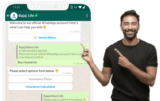 To ensure your queries are resolved anytime and from anywhere, we are happy to launch our WhatsApp services. Making us available for you 24x7 to ensure your Life Goals are on track. All you need to do is add 8806727272 to your contacts and Say ‘Hi’ on WhatsApp from your registered mobile number.